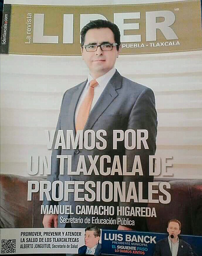 Lo anterior, después de que la imagen de Manuel Camacho secretario de Educación Pública en el Estado ocupa la portada de la revista poblana de corte político "Líder".