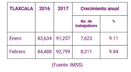 Y lo mas interesante es que esa tendencia se mantuvo en febrero. El año pasado se tenían asegurados en el IMSS 84,488 personas y para el mismo mes de este 2017 la cantidad alcanzada fue de 92,799 trabajadores, cifras que confirman un crecimiento del 9.84 por ciento, según los datos del Instituto.