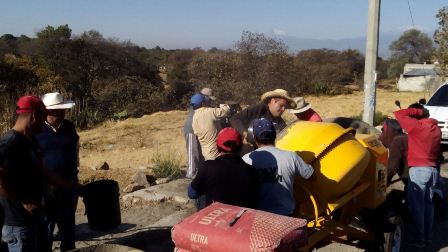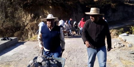 Así inician este domingo la faena comunitaria encabezada por el presidente municipal independiente de Santa Cruz Tlaxcala, Miguel Ángel Sanabria Chávez, en la localidad de Guadalupe Tlachco, para la constricción de un empedrado del paso de la barranca que viene de la ex hacienda La Concepción y, que une a las calles Juan Domingo Bautista y 10 de abril del paraje Cuatzontetla.