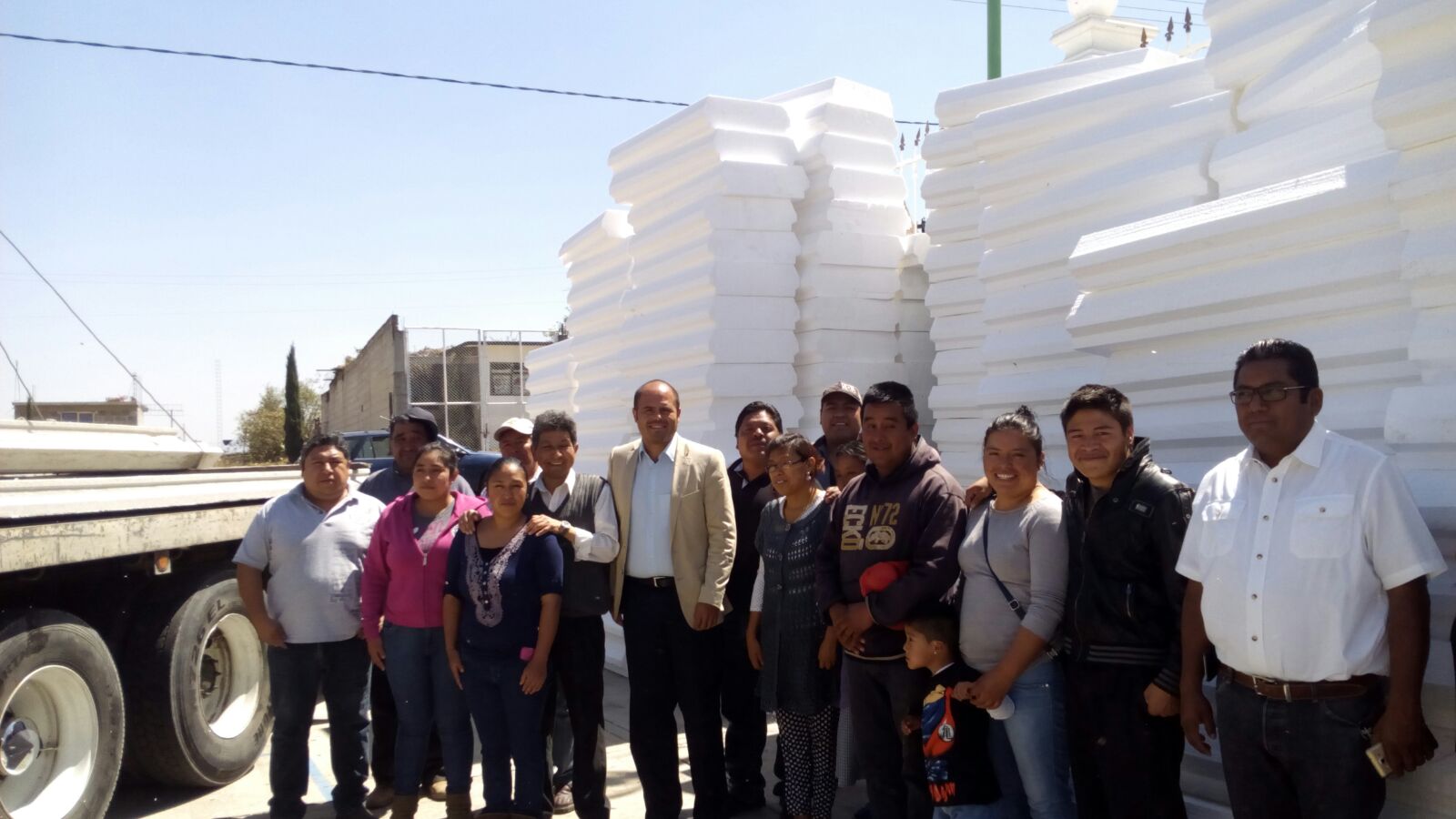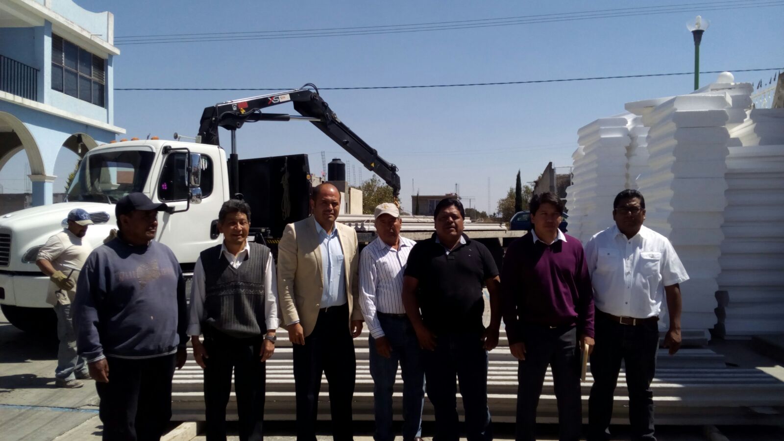 Para tal fin, el día del ayer Sanabria Chávez hizo entrega de 56 viguetas y 245 piezas de poliestireno en forma de bovedilla.