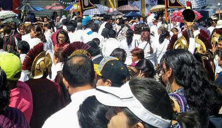 Se espera que la procesión culmine pasadas las 14:00 horas en el parque Hidalgo, en donde se habrá de eacenificar la crucifixión de los diversos grupos que realizan la misma.