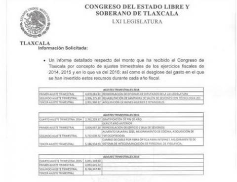 Los ajustes del 2016 fueron por 16 millones 881 mil 910 pesos y los legisladores no dieron a conocer para que fueron utilizados los recursos, que se presume ocuparon para gratificaciones personales por el final de la legislatura.