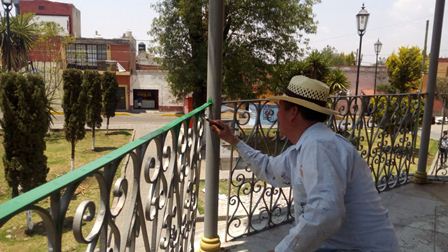 Santa Cruz Tlaxcala, Tlaxcala.- Con la finalidad de brindar una buena imagen a los visitiantes que arriben a la próxima feria patronal de Santa Cruz Tlaxcala, la administración municipal en turno que encabeza Miguel Ángel Sanabria Chávez, lleva a cabo actualmente la rehabilitación del quisco ubicado en la explanada del parque municipal.