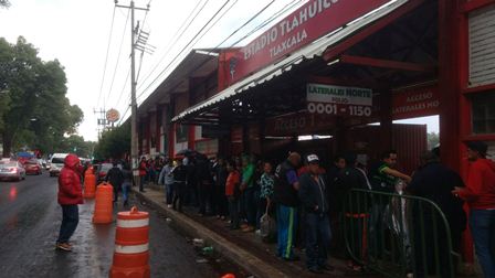 La lluvia que comenzó alrededor de las 18:20 horas no fue impedimento para que los aficionados de “Los Coyotes de Tlaxcala” hagan filas para ingresar al estadio Tlahuicole para el partido de ida en la final de ascenso a la Primera “A” que disputan con el equipo de “Los freseros de Irapuato”.