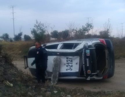 Hecho registrado el pasado martes 2 de mayo, en cuyas imágenes fotográficas es posible apreciar una patrulla con el número de control 3 2127 volteada sobre la calle 15 de septiembre.