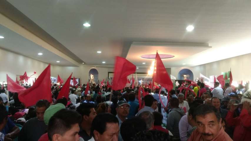 Con cientos de acarreados de los diferentes municipios que gobierna el Partido Revolucionario Institucional (PRI), el tricolor llenó el auditorio "Joaquín Cisneros Molina" para la toma de protesta de Florentino Domínguez Ordóñez como dirigente estatal.
