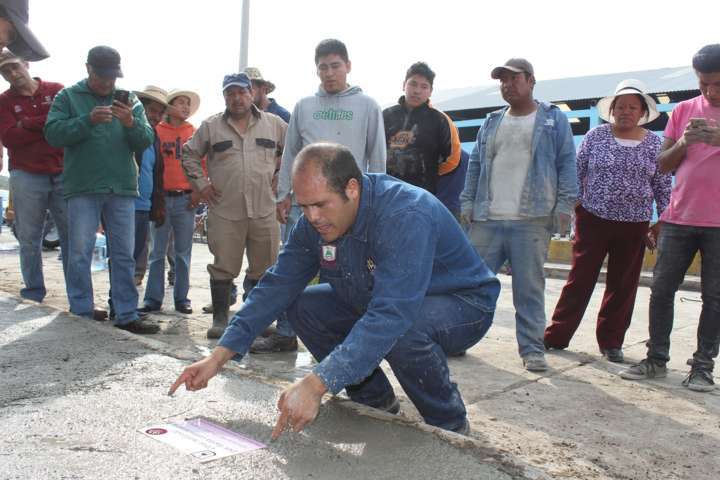Santa Cruz Tlaxcala, Tlax.- El presidente municipal, Miguel Ángel Sanabria Chávez colocó ayer en la comunidad de Jesús Huitznahuac la primera placa de las obras ejecutadas con el programa “Faenas comunitarias”.