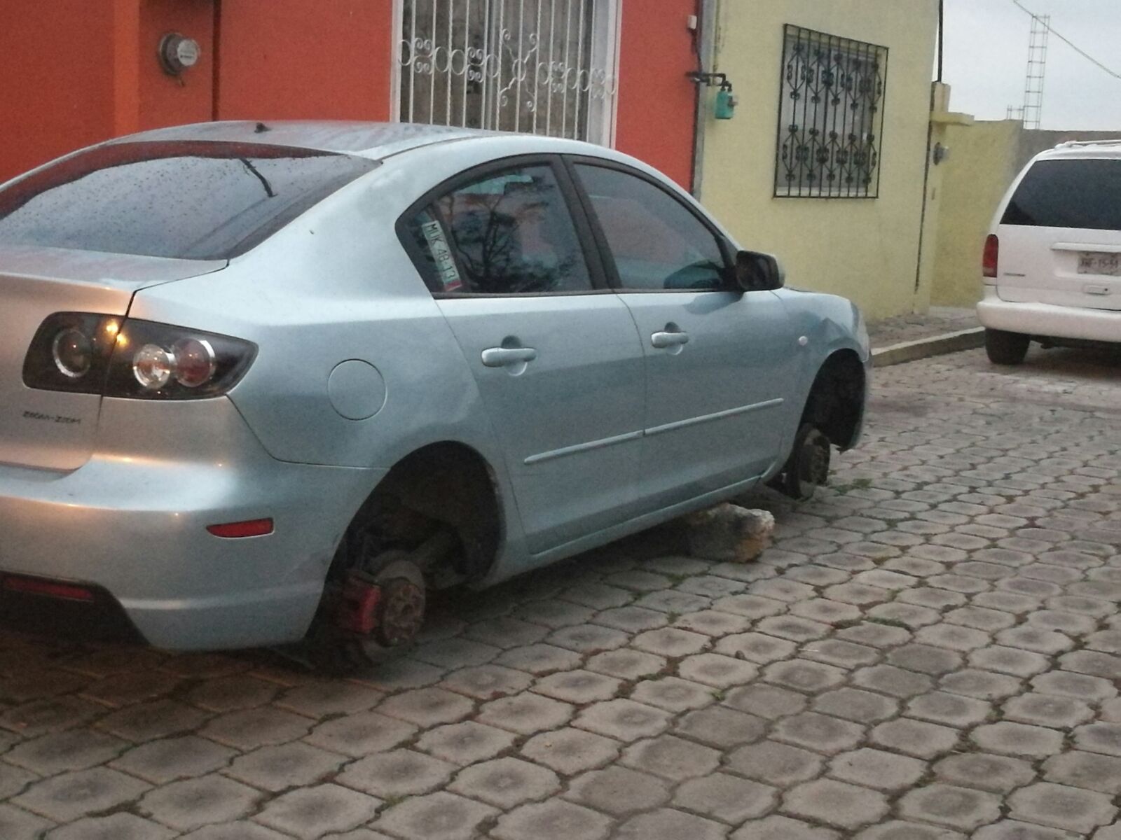 Fue un auto Mazda color gris el que fue víctima de la delincuencia y lo dejaron sin llantas y rines, hecho que se registró en una colonia de la capital del estado que se ubica a menos de un kilómetro de donde despacha el gobernador Marco Mena Rodríguez.