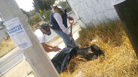 Se han levantado por la vía pública de nuestro Municipio perros, gatos u otros animalitos, sobre las calles o en campo, esto además de obstruir la vialidad, pueden representar algún peligro para los vecinos, por ello se levanta al animalito para evitar que vuelen las esporas y se presente alguna infección.