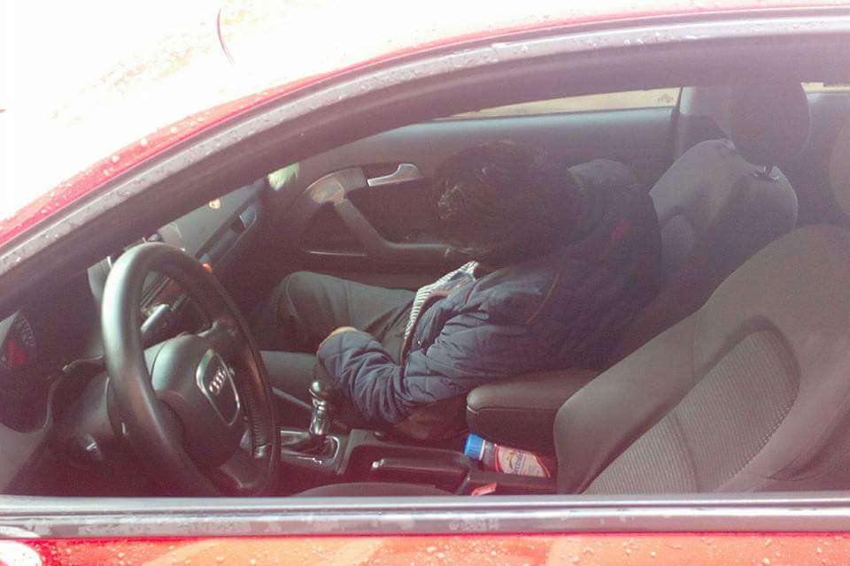 El exceso en la ingesta de bebidas alcohólicas sería la causa por la que el conductor de un Audi A3 color rojo se quedó dormido y se impactó contra una camioneta negra que se encontraba estacionada frente al Congreso del Estado.