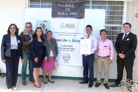 La Comisión Estatal de Derechos Humanos (CEDH) certificó a la telesecundaria ‘Municipio de Tlaxco’ como libre de acoso escolar, luego de que este plantel educativo cumplió satisfactoriamente con los parámetros para detectar, combatir e inhibir la violencia entre iguales que establece el organismo autónomo para otorgar la certificación.