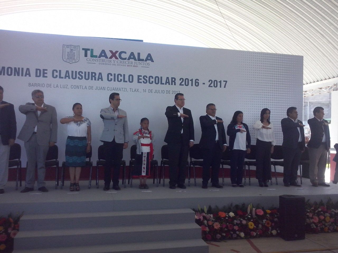 Con un mensaje en tres lenguas a cargo de la alumna Ingrid Conde Bautista, el gobernador Marco Mena Rodríguez clausuró el ciclo escolar 2016-2017 en la escuela primaria de educación indígena Maxixcatzin del municipio de Contla.