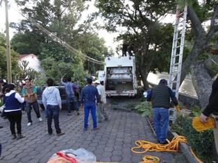 En la faena estuvo la Presidenta de Comunidad de la Candelaria Teotlalpan Fabiola Valencia Díaz, el Presidente de Comunidad de Acxotla del Río Luis Nava Atonal, el Secretario del Ayuntamiento Arq. Servando Javier Ibarra Bañuelos, los directores de Ecología Ing. Gerardo Grande Rodríguez, de Servicios Públicos Municipales Day Juárez Flores, el personal operativo con camiones recolectores de basura y camionetas para el traslado de troncos y ramas y de policías municipales quienes estuvieron al pendiente para el desvío del tráfico vehicular.