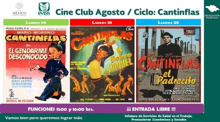 El Teatro “Lic. Ignacio García Téllez” del Instituto Mexicano del Seguro Social (IMSS) en Tlaxcala, dedica sus funciones de Cine Club, los días lunes del mes de Agosto, a Cantinflas.