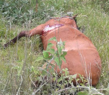 Aunque el conductor del automóvil no resultó lesionado, su vehículo quedó destrozado y el animal murió a los pocos minutos de recibir el golpe. El cuerpo del caballo quedó tendido a un costado de la carretera.