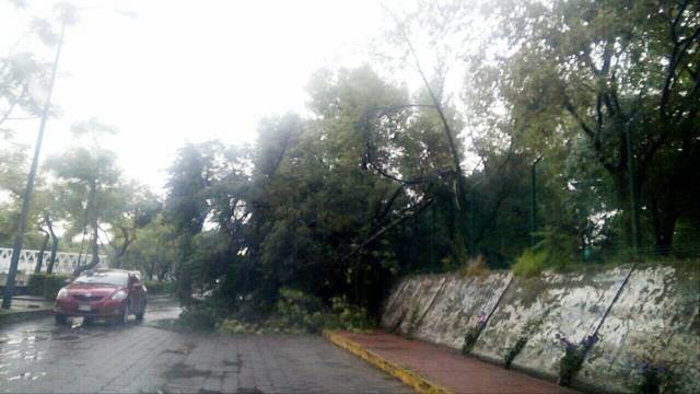 Derivado del reblandecimiento de la tierra, un árbol ubicado en el Parque de la Juventud cayó la mañana de este jueves sobre la calle "Heróico Colegio Militar", mejor conocida como la rivereña.