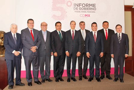 El Gobernador Marco Mena asistió al Quinto Informe de Gobierno de Miguel Ángel Mancera Espinosa, Jefe de Gobierno de la Ciudad de México, quien dio a conocer los logros obtenidos durante su administración en diversos rubros.