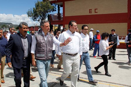 Posteriormente, el Gobernador Marco Mena y el Secretario Aurelio Nuño arribaron al Centro de Bachillerato Tecnológico, Industrial y de Servicios (Cbtis) 211 en la comunidad de San Jorge Tezoquipan, del municipio de Panotla.