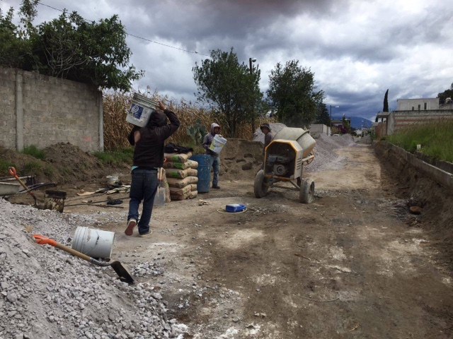 La construcción de pavimento de adocreto así como guarniciones se continúan en la calle 5 de Mayo de la comunidad de Tlapayatla, siendo acciones que llegan a los ciudadanos, con el propósito de mejorar la imagen urbana.