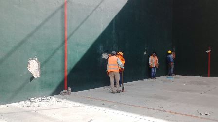 El director de Obras Públicas del Municipio de Tlaxcala, Miguel Ángel Trejo Mendoza explicó que el acuerdo realizado para garantizar la seguridad de los menores establece que la barda del frontón sería recortada y servirá de división a salones del preescolar, pero ese tipo de construcción se debe retirar prácticamente a mano “por eso tardamos, pero este día llegará herramienta más especializada y avanzaremos, lo que más nos importa es cuidar la seguridad de los niños”.