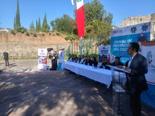 El presidente municipal de Tepeyanco, Bladimir Zainos Flores clausuró la Semana de Prevención del Delito en compañía del jefe de departamento de Prevención del Delito y Acompañamiento a Víctimas, Edgar Hernández Pérez y estudiantes de diferentes planteles educativos de la localidad.