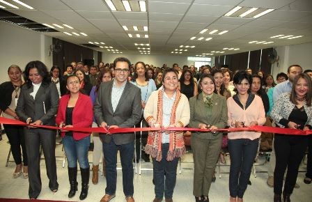 El corte de listón inaugural de la Unidad de Género fue atestiguado por las enlaces de Unidades de Género de otras dependencias estatales, directivos y jefes de departamento de educación inicial, básica, media superior y superior.