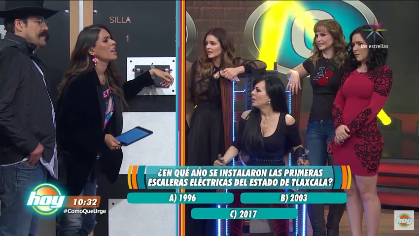 El conocido programa de televisión enfocado a los espectáculos realizó la pregunta, ¿En qué año se instalaron las primeras escaleras eléctricas del estado de Tlaxcala?, Poniendo tres opciones como respuesta, la primera en 1996, la segunda 2003 y la tercera 2017.