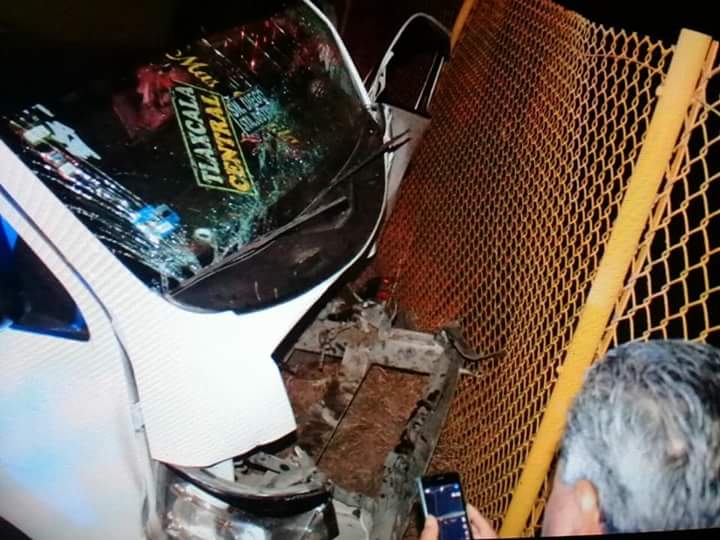 El fuerte golpe provocó que la colectiva perdiera el control y atravesara la autopista para culminar su trayecto contra una malla ciclónica.