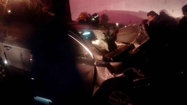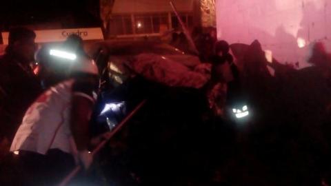 Dos jóvenes que viajaban en un automóvil Volkswagen marca Passat con placas 213 TUY del Distrito Federal se impactaron contra un muro que se localiza al costado de la taquería La Gran Avenida, quedando prensados entre los fierros de la unidad.