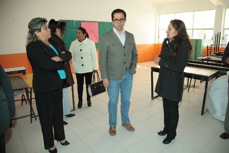 Al concluir el acto cívico, la directora de esta institución, Petra Guillermina Molina Lumbreras, y miembros del Comité de Padres de Familia, acompañaron al Secretario de Educación durante la revisión de los trabajos efectuados.