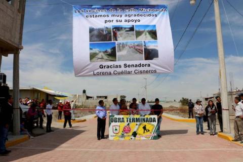 A pocos días de que se iniciaran los trabajos para el adoquinamiento de calle Michoacán que se encuentra ubicada en la colonia Vista Hermosa del municipio de Santa Cruz Tlaxcala, fue inaugurada la obra de infraestructura que a petición de la ciudadanía se llevó a cabo gracias a la gestión que realizó la senadora Lorena Cuéllar Cisneros.