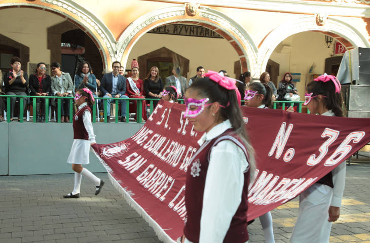 El Secretario de Educación, Manuel Camacho Higareda, atestiguó la tarde de este miércoles el colorido desfile del sector, en el marco del "Carnaval Tlaxcala 2018", en el centro histórico de la capital.