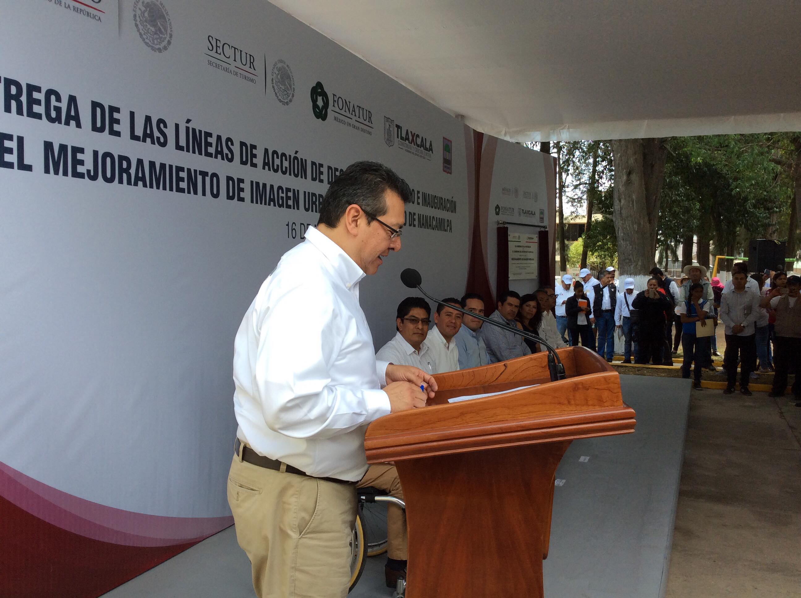 El gobernador Marco Antonio Mena Rodríguez realizó la entrega las “Líneas de Acción de Desarrollo Turístico” y luego inauguró el Mejoramiento de la Imagen Urbana de Nanacamilpa junto con autoridades federales y estatales.