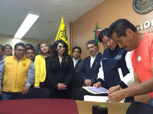 La recepción del expediente estuvo a cargo del Vocal Ejecutivo de esa jurisdicción electoral federal, César Lara Cano y por el Vocal Secretario, Jerónimo Pérez Pérez, quien dio fe del acto y asentó el sello respectivo.