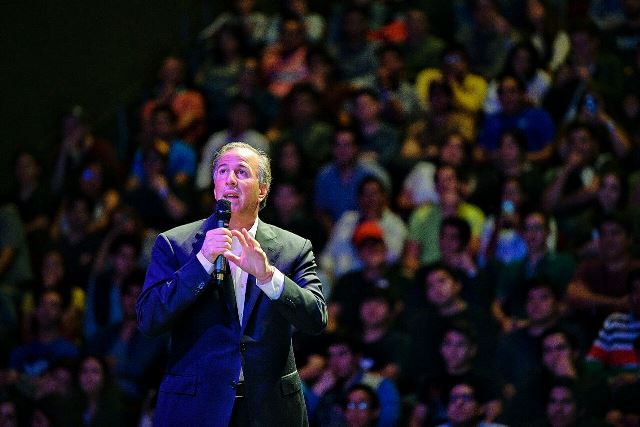 En el auditorio del Tec de Monterrey, José Antonio Meade dialogó con los jóvenes de forma abierta, intercambió ideas y respondió preguntas que hicieron los moderadores del foro Mara, Arturo y Abner, estudiantes del Tec de Monterrey.