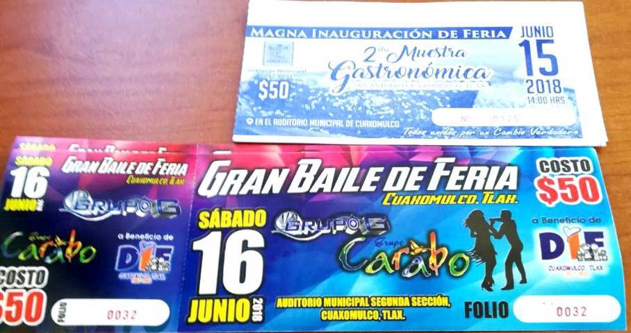 Personal que labora en la presidencia municipal de Coaxomulco que pidieron el anonimato por temor a represalias denunciaron que a cada uno de los que trabajan en la alcaldía les dieron boletos para el baile y la muestra gastronómica para que fueran vendidos, de no hacerlo tienen que pagar el importe por el total de lo que les fue entregado.