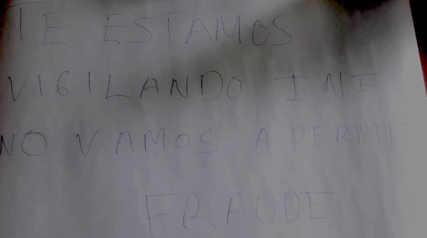“Saca las manos del proceso electoral gobierno”, “Te estamos vigilando INE no vamos a permitir el fraude”, “No permitiremos que se burle la voluntad de la mayoría”, entre otros textos que pondrán afuera de los domicilios para hacerle saber al gobierno estatal y federal, así como al Instituto Nacional Electoral (INE) que no se tolerará un fraude electoral.