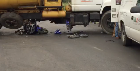 La tarde de este miércoles un hombre que iba a bordo de su motocicleta muere tras impactarse con una pipa, por el presunto exceso de velocidad, esto sobre la autopista Puebla-Tlaxcala a la altura del municipio San Jerónimo Zacualpan.