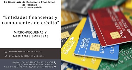 El curso gratuito “Entidades financieras y componentes de crédito”, se llevará a cabo el 27 de junio en la sala “Emilio Sánchez Piedras” de la Sedeco, en un horario de 9:45 a 13:00 horas.