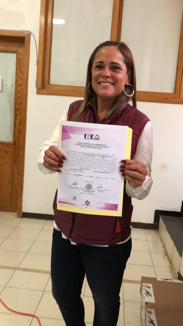 El ITE entrega constancia de mayoría a la ganadora del distrito II