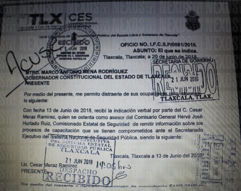 De acuerdo al oficio número I.F.C.S.P/0661/2018, cuya copia obra en este medio de comunicación, y que fue dirigido al Gobernador del Estado, Marco Mena, se precisó que existe un desfase de más de tres meses en la entrega de información necesaria para el cumplimiento de capacitaciones programadas ante el Secretariado Ejecutivo del Sistema Nacional de Seguridad Pública (SESNSP).