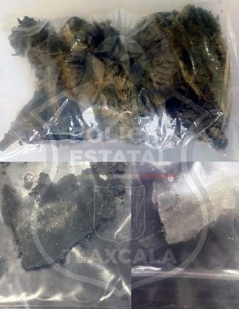 Esta acción, en Apizaco, elementos de la CES detuvieron a una mujer con marihuana y cristal con fines de venta.
