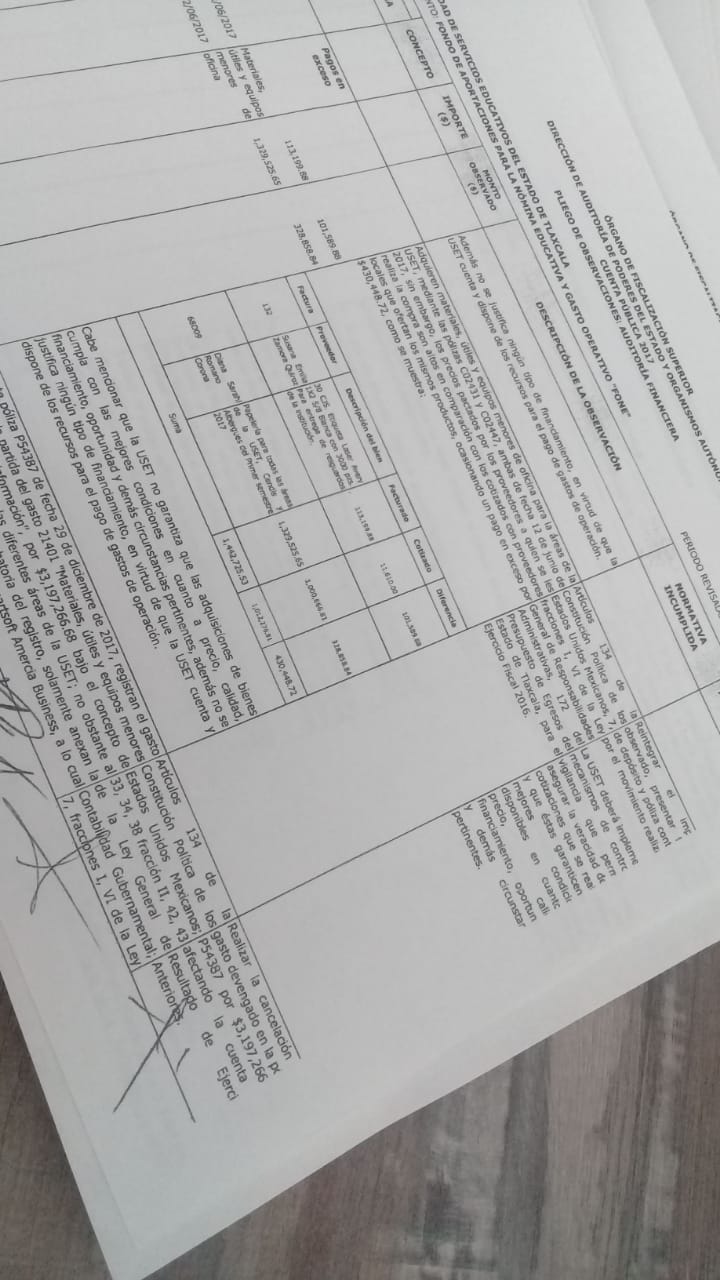 En ese procedimiento se verificó que las autoridades de la USET omitieron información relevante como indicadores de resultados, gasto de representación y viáticos, procedimientos de adjudicación y licitaciones, así como el informe de avances programáticos o presupuestales y el inventario de bienes muebles e inmuebles.
