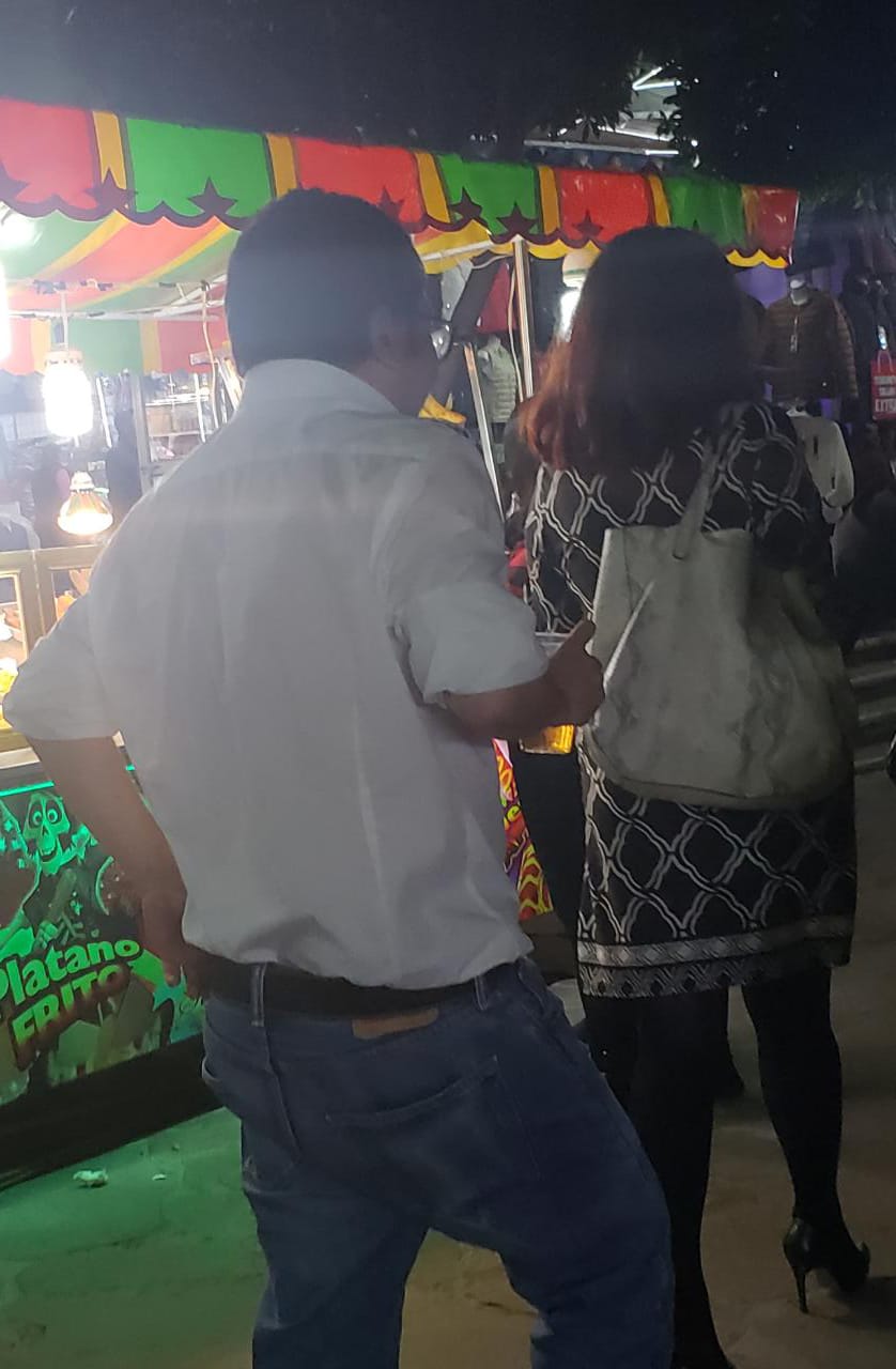 Y es que el regidor fue encontrado caminando en el recinto ferial con un vaso de cerveza en las manos, tambaleándose y a punto de caerse, siendo acompañado por un séquito de sus seguidores.