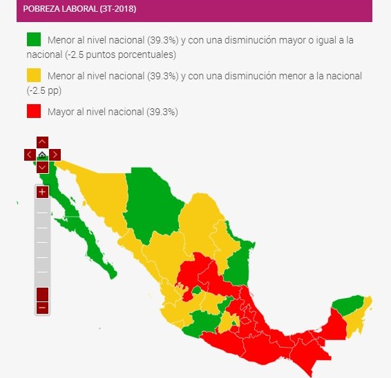 Datos de la organización “¿México Como Vamos?” que se encarga de analizar las cifras económicas del país y las entidades, en base a cifras del Instituto Nacional de Estadística y Geografía (INEGI), refieren que casi la mitad de la población del estado vive en pobreza laboral, es decir no pueden adquirir la canasta básica con los ingresos totales laborables en su hogar.