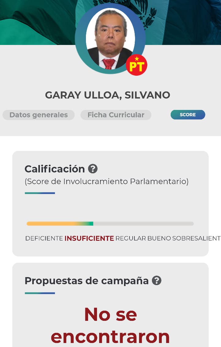 El equipo de Buro Parlamentario definió su Score de Involucramiento Parlamentario con calificaciones como deficiente, insuficiente, regular, bueno y sobresaliente; ranking basado en elementos concretos que mide el nivel de participación en ciertas etapas del proceso de creación y aprobación de leyes.