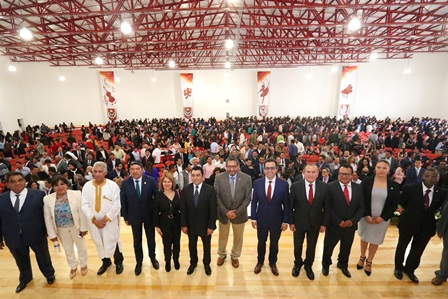 Este acto, contó con la presencia de la Senadora, Minerva Hernández Ramos, Secretaria de la Comisión de Educación; de la Diputada local, Luz Vera Díaz; del Lic. Nepalí Moisés Gutiérrez Juárez, Presidente Municipal de Calpulalpan; de los excelentísimos Embajadores, Ahmed Mulay Ali Hamadi, de la República Árabe Saharahuí, y Ly Djerou Robert, de la República de Costa de Marfil.