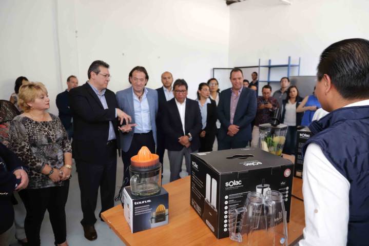 Como parte del evento, directivos de Ensambles Bancor presentaron al Gobernador Marco Mena las innovaciones tecnológicas que implementan en sus productos, como una licuadora que cuenta con una báscula que permite medir, a través de una aplicación, las calorías de los alimentos que se procesan, y contiene un recetario con ocho categorías que permite desarrollar paso a paso platillos saludables.