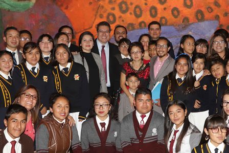 Estuvieron en este acto Juan Francisco Ealy, Director General de El Universal; Enrique Alberto Mendoza Filidor, Miembro del Consejo Consultivo del Concurso Nacional de Oratoria de El Universal; Enrique Bustamante Martínez, Director de la Fundación Ealy Ortiz; y Alejandro Fernández Campillo, Secretario de Educación del Estado de México.
