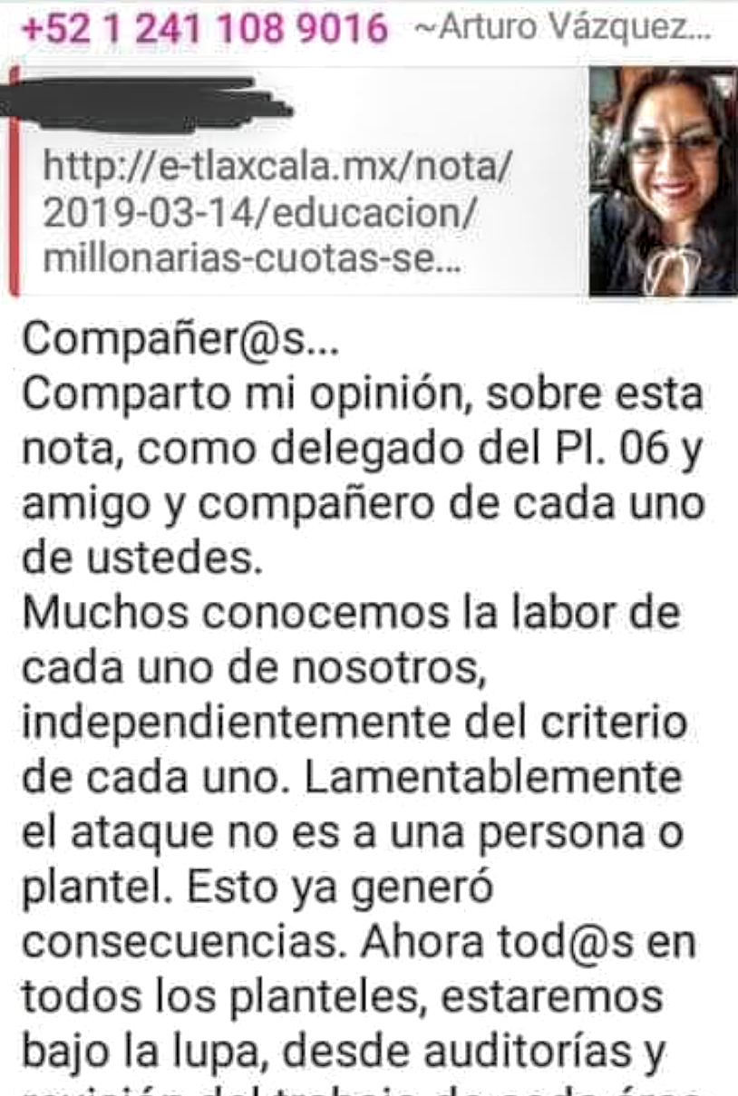 Esto luego de que el mismo Arturo Vázquez comentara al personal a través de WhatsApp que luego de que se dieran a conocer las anomalías en el plantel 06, estarán bajo vigilancia dese auditorías hasta la revisión del trabajo de cada área.